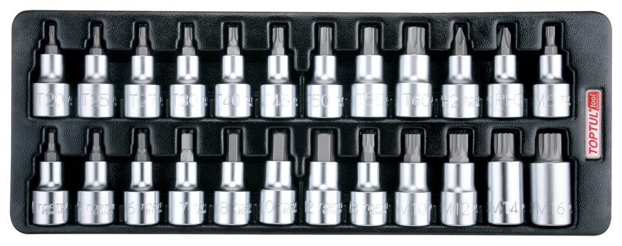 Набор головок торцевых 1/2" с насадками Hex, Torx, Spline, 24 предмета, в ложементе TOPTUL