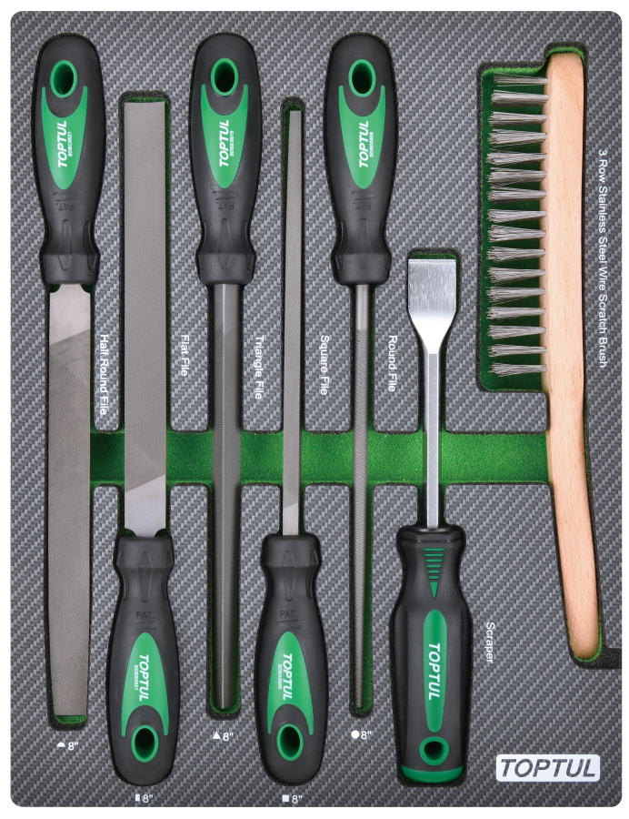 Набор инструментов, напильники, шабер и щетка, 7 пр. в мягком ложементе TOPTUL GEB0705 купить в Москве и других городах России