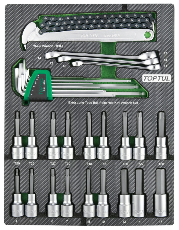 Набор торцевых насадок, шестигранники Г-образные и разрезные ключи, 31 пр. в мягком ложементе TOPTUL GEB3109 купить в Москве и других городах России