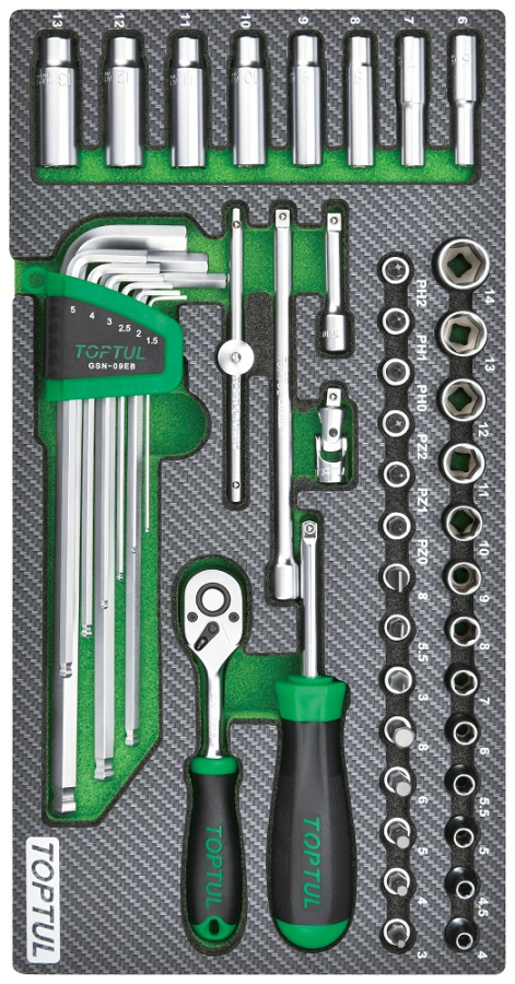 Набор головок и аксессуаров 1/4", 50 пр. в мягком ложементе TOPTUL GEA5004 купить в Москве и других городах России