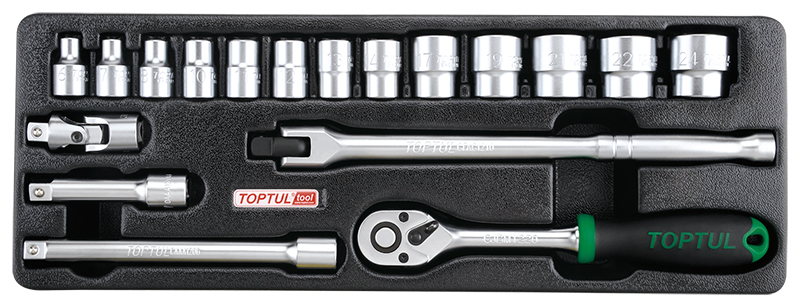 Набор головок и аксессуаров 3/8" 6-24 мм, 18 предметов в ложементе (A) TOPTUL GCAT1808 купить в Москве и других городах России