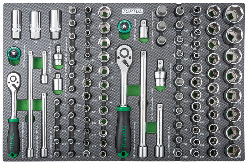 Набор головок и аксессуаров 3/8" и 1/2" 6-гр., 104 предмета в мягком ложементе (D) TOPTUL GEDA429 купить в Москве и других городах России