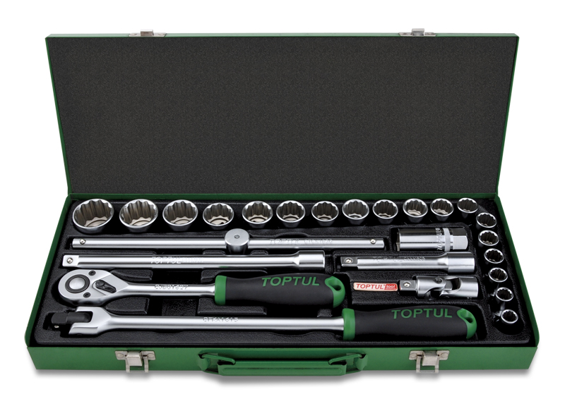 Набор головок и аксессуаров 1/2" 12-гранных 10-32 мм, 25 предметов в метал. кейсе TOPTUL