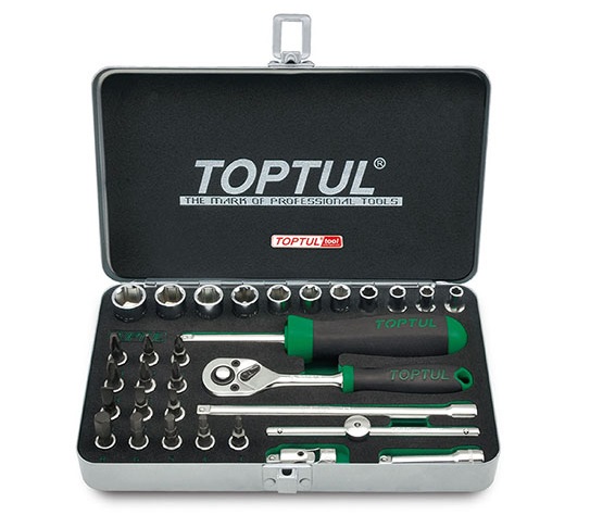 Набор головок и аксессуаров 1/4", 31 предмет в кейсе TOPTUL