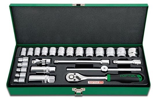 Набор головок и аксессуаров 3/8" 12-гранных 6-24 мм, 25 предметов в метал. кейсе TOPTUL GCAD2504 купить в Москве и других городах России