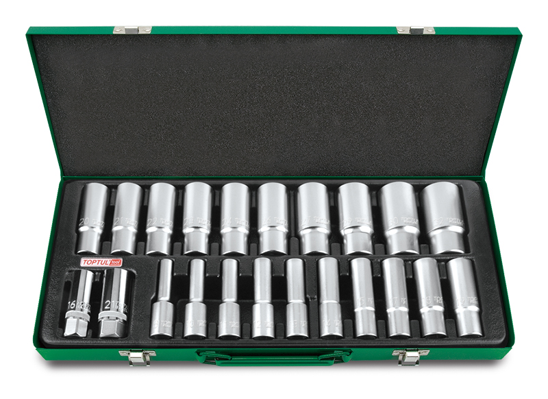 Набор головок удлиненных 1/2" 6-гранных 8-32 мм, 22 предмета в метал. ящике TOPTUL купить в Москве и других городах России