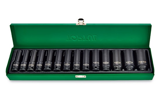 Набор ударных головок удлиненных 1/2" от 10 до 32 мм, 14 пр. в мет.ящике TOPTUL GDAD1401 купить в Москве и других городах России